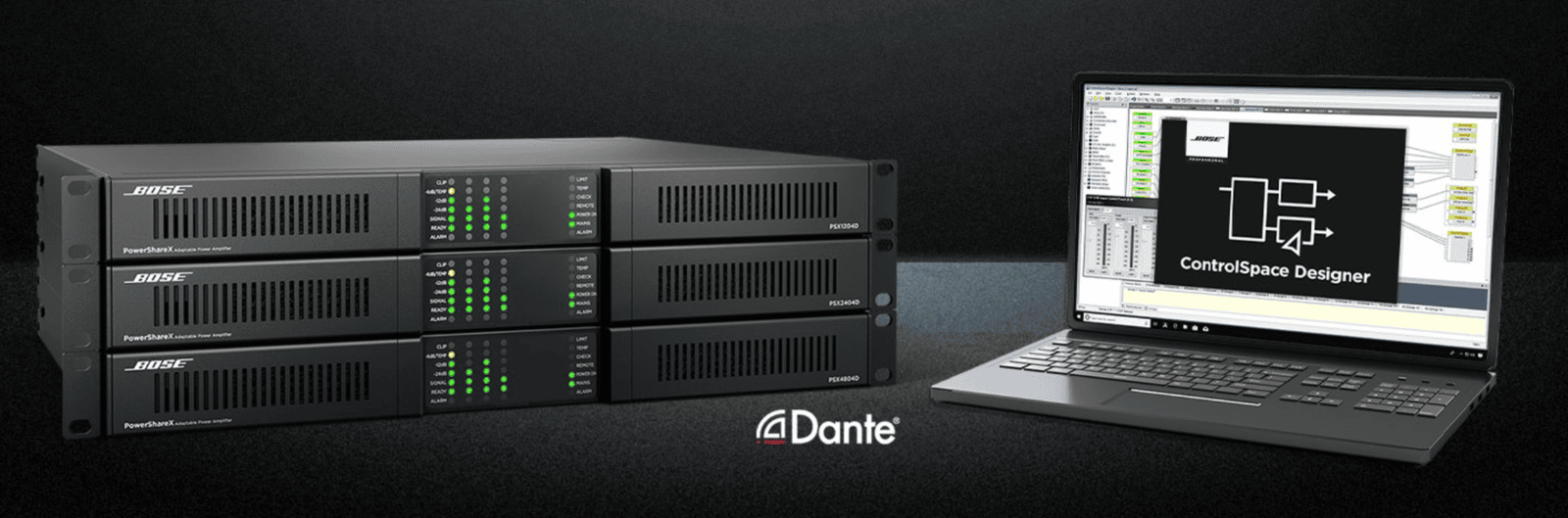 Featuring onboard DSP, seamless integration with ControlSpace Designer software, and proven Powersoft technology, PowerShareX amplifiers are an ideal match for Bose Professional loudspeaker systems. Each networkable, four-channel amp offers innovative power-sharing flexibility, Dante connectivity, and much more — all in a space-saving 1RU design.